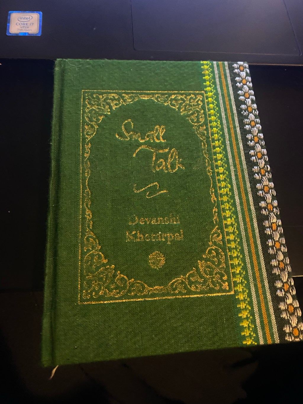 One personal belonging I hold most dear is the book, “Small Talk” by Devanchi Khomrpal. It is a small green hardcover book of poetry. My sister gave it to me for Yule in 2020. There is a handwritten note by the author on the cover page, making it extra special to me. I find myself reading it often these days.