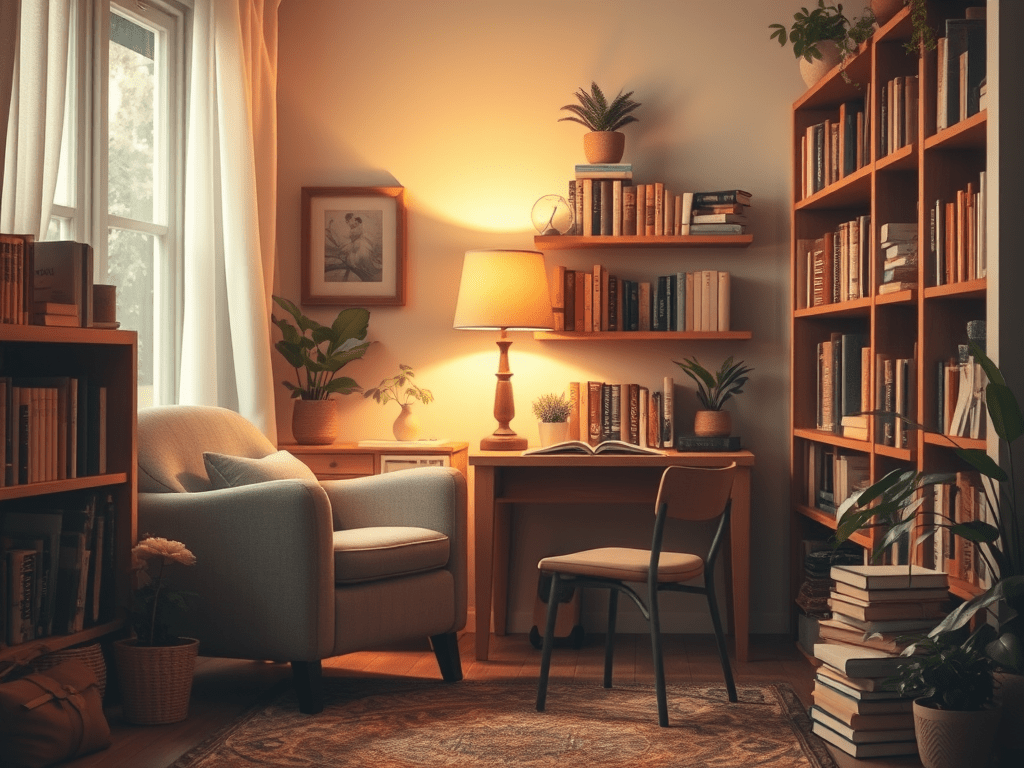 A lamp with warm light makes writing feel possible.
